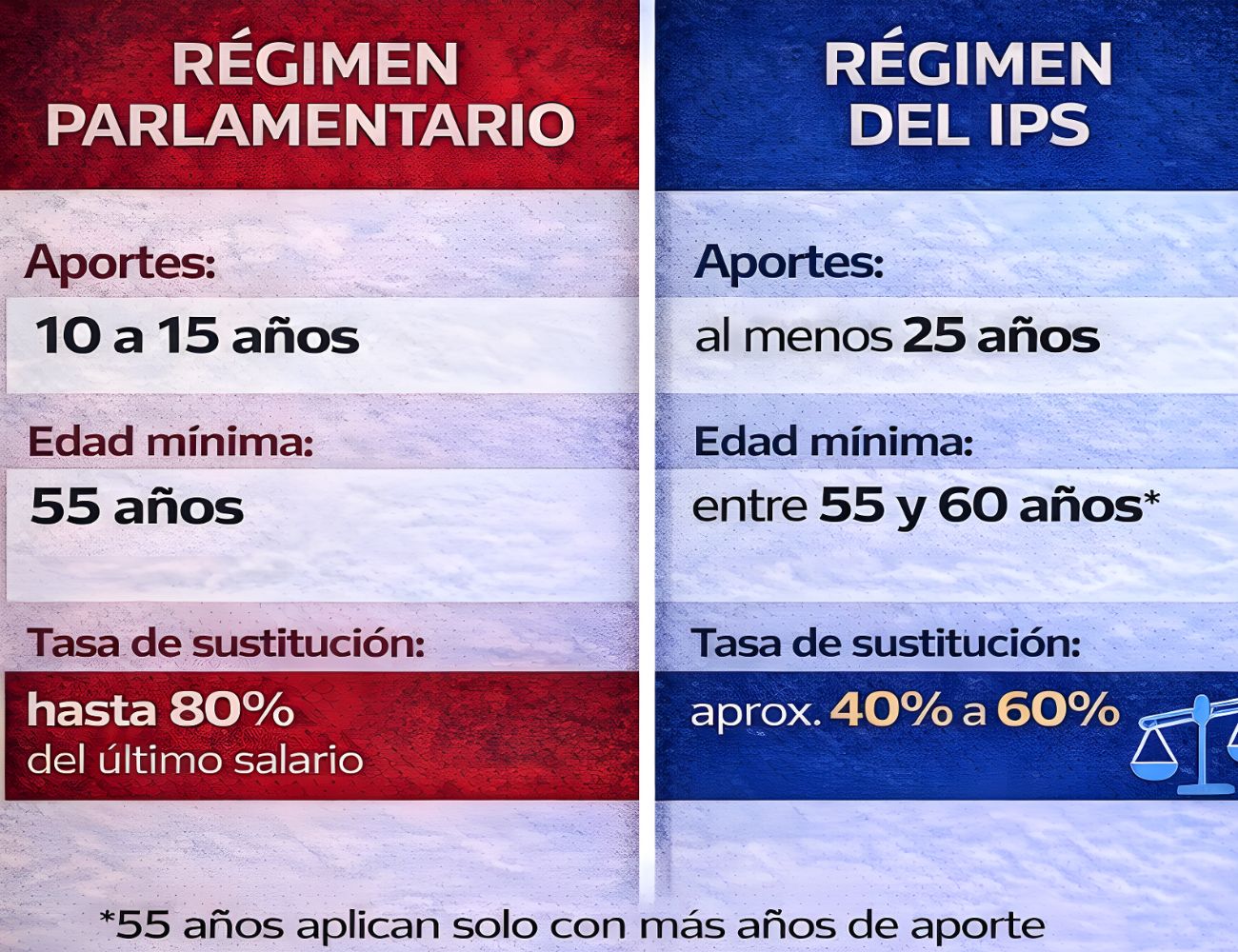 En el régimen del Instituto de Previsión Social, en cambio, se exigen 25 años de aportes y una edad mínima mayor, con tasas de sustitución significativamente más bajas. La diferencia no es marginal: la jubilación promedio del sistema general ronda los G. 2.760.000, mientras que la jubilación parlamentaria promedio supera los G. 11.800.000 mensuales.
