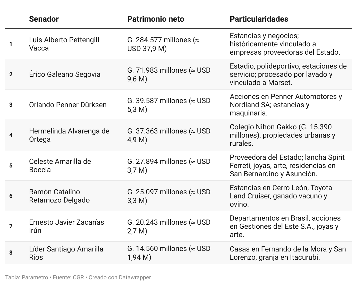 Los mayores beneficiarios perciben haberes cercanos a los G. 27,8 millones mensuales, más de diez veces el salario mínimo vigente. Todo ello financiado con impuestos generales, en un país donde cerca del 70% de la población ocupada trabaja en la informalidad y no accede a ningún sistema jubilatorio.