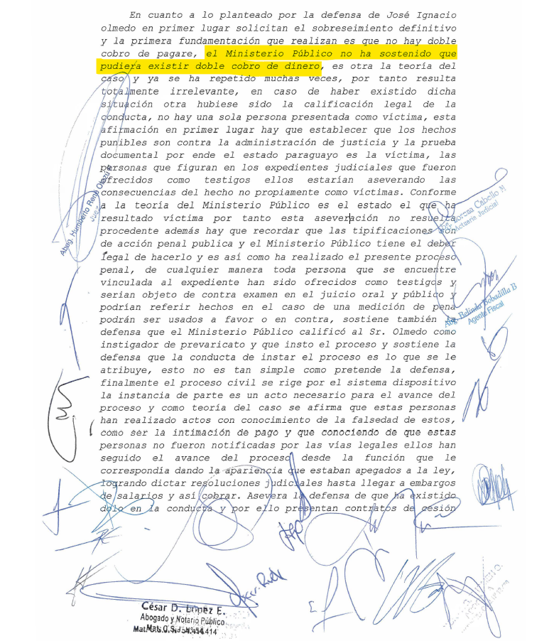Durante la audiencia preliminar del proceso que involucra al abogado de CARSA, José Ignacio Olmedo, la Fiscalía respondió a la defensa dejando asentado de manera textual que “el Ministerio Público no ha sostenido que pudiera existir doble cobro de dinero; es otra la teoría del caso”.