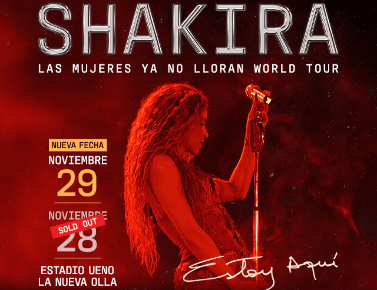 Los días 28 y 29 de noviembre, Shakira ofrecerá dos funciones consecutivas en La Nueva Olla, cada una con capacidad para más de 45.000 personas. La primera fecha agotó localidades con rapidez, impulsando la apertura de la segunda. Las entradas abarcaron un rango entre Gs. 490.000 y Gs. 5.500.000.