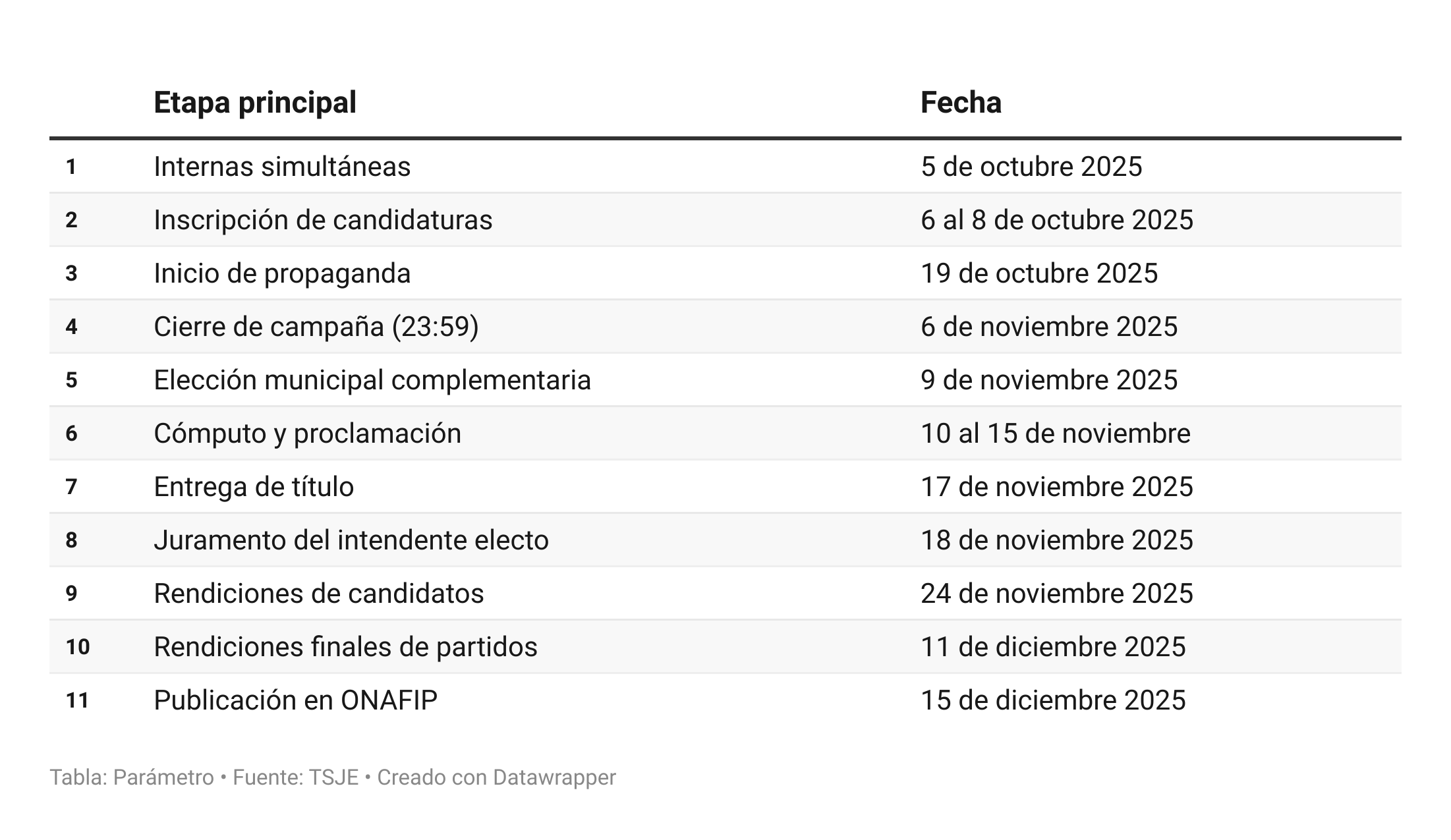 El cronograma oficial establece cada paso del proceso, desde las internas partidarias hasta la rendición de cuentas finales. Estos son los hitos más relevantes: