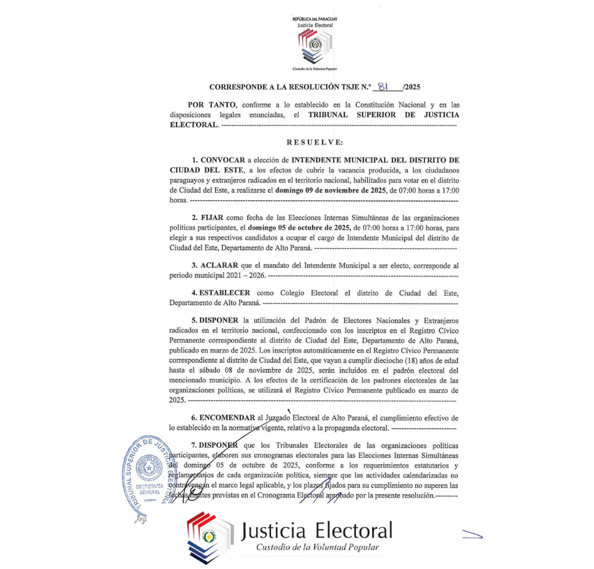 Ciudad del Este vive semanas intensas. La Cámara de Diputados destituyó a Prieto el 19 de agosto de 2025 con 47 votos a favor, 30 en contra y 3 ausentes, tras un informe de intervención que detectó irregularidades en su administración. El Tribunal Superior de Justicia Electoral (TSJE) reaccionó con rapidez y publicó un calendario detallado que abarca desde las internas de octubre hasta la rendición final de cuentas en diciembre. La elección definirá no solo al nuevo jefe comunal, sino también el pulso electoral rumbo al 2026.
