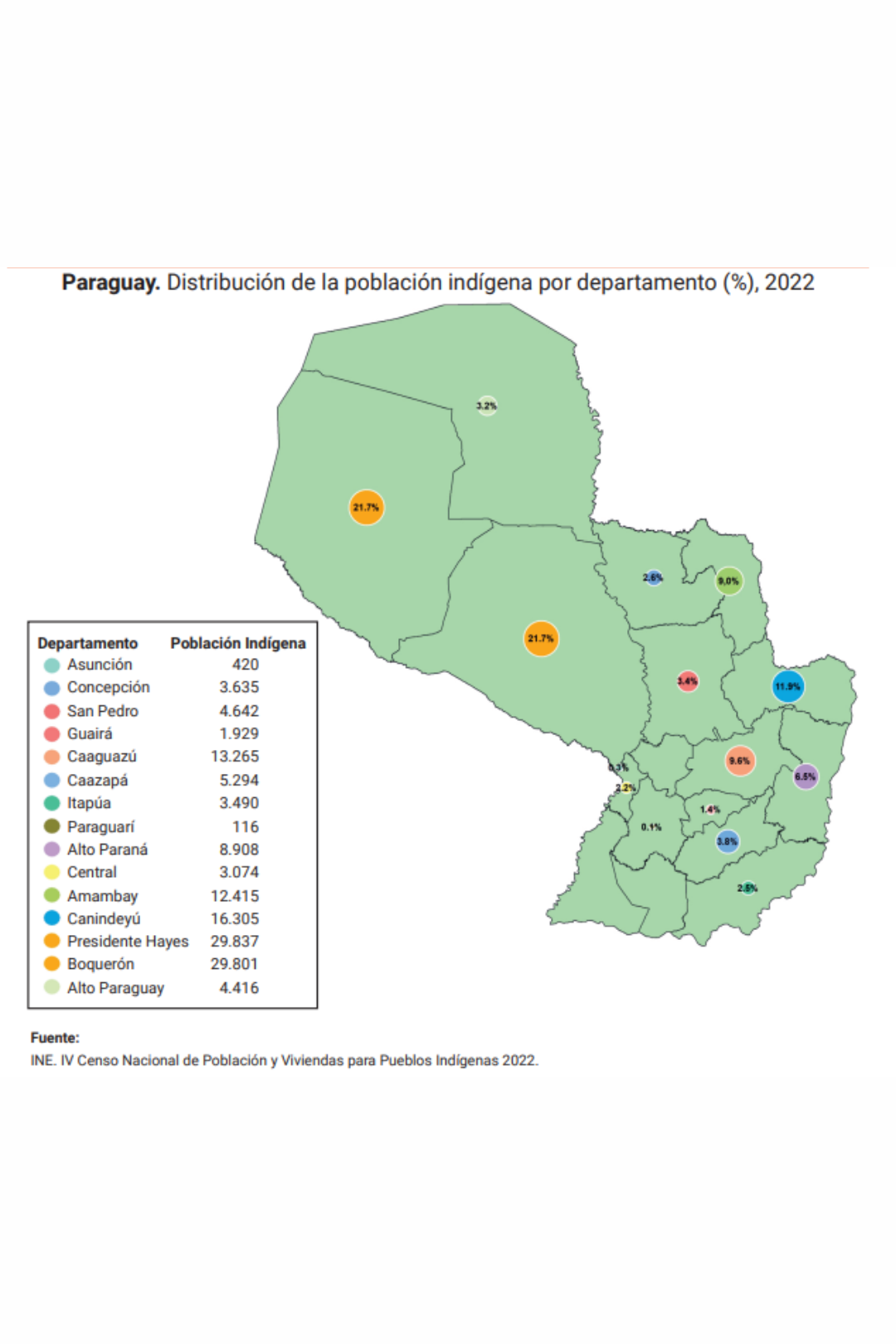 La mayor concentración está en el Chaco, con 43% de la población indígena en Presidente Hayes y Boquerón, mientras que en la región Oriental destacan Canindeyú, Amambay y Caaguazú, con el 30% del total.