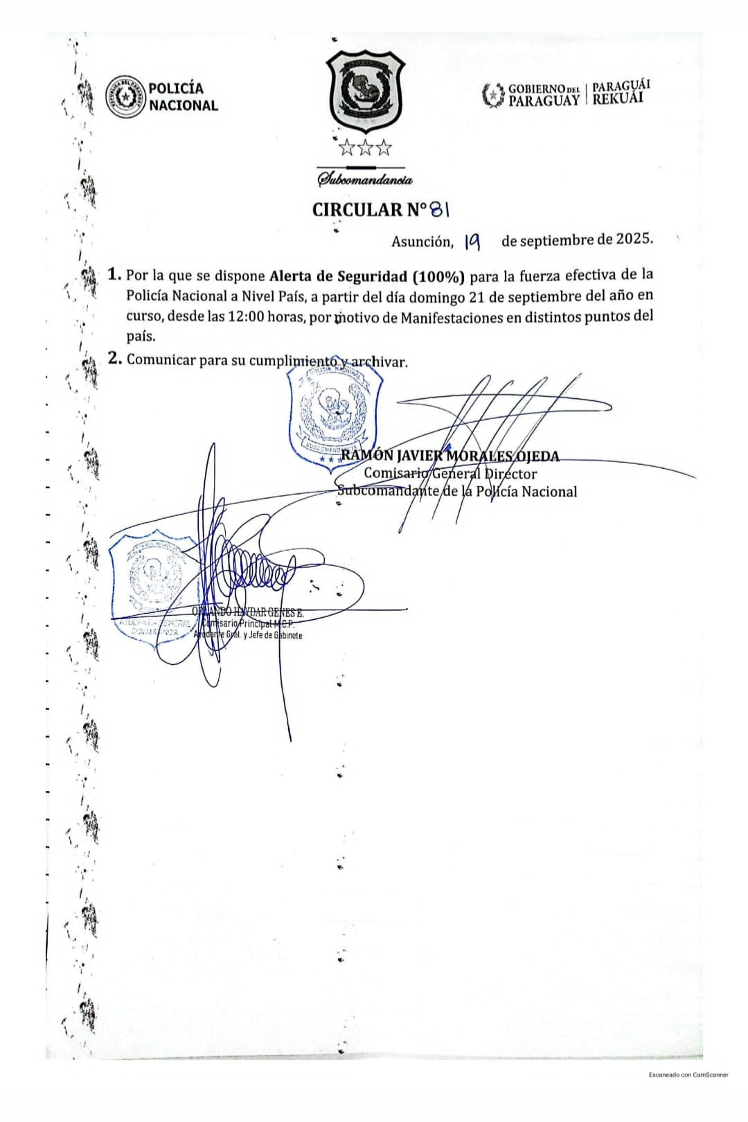 La Policía Nacional declaró “alerta de seguridad 100%” desde el 21 de septiembre, en previsión de protestas simultáneas. El operativo refleja que, frente a los reclamos, el gobierno vuelve a priorizar el control policial sobre el diálogo político.