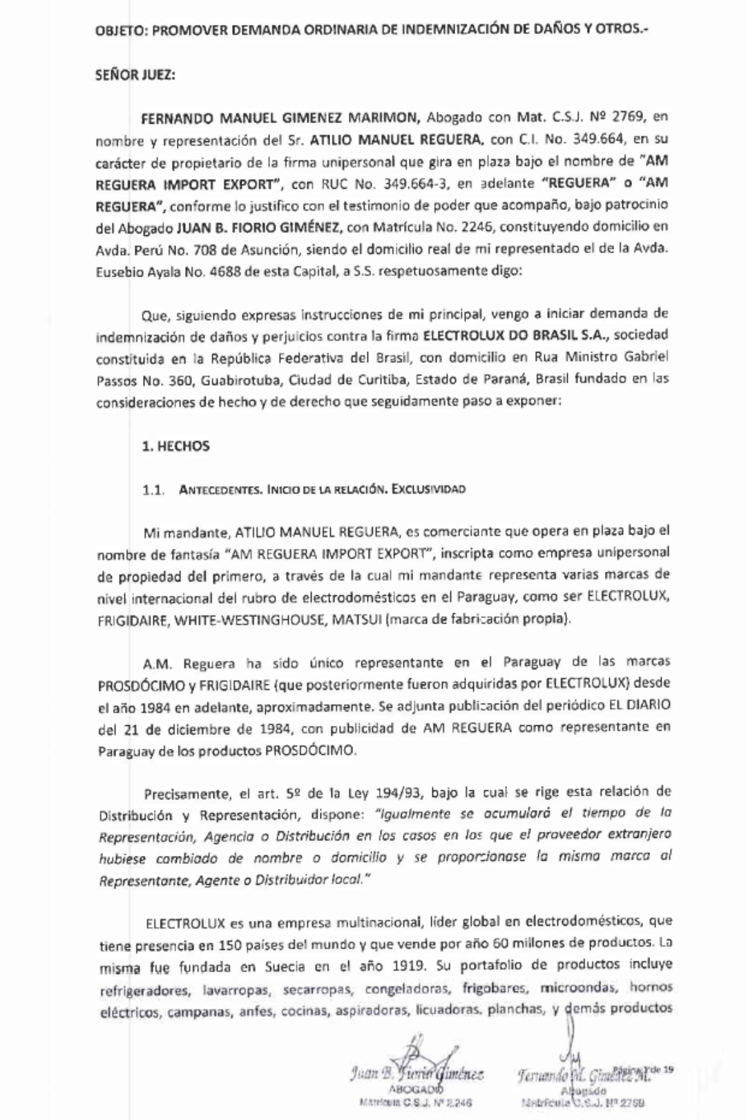 Más de una década después, en 2018, Electrolux nombró a otro distribuidor en Paraguay. Reguera denunció una ruptura unilateral y exigió indemnización. Lo que parecía un diferendo comercial cerrado terminó convertido en un litigio que expone debilidades del sistema judicial paraguayo.