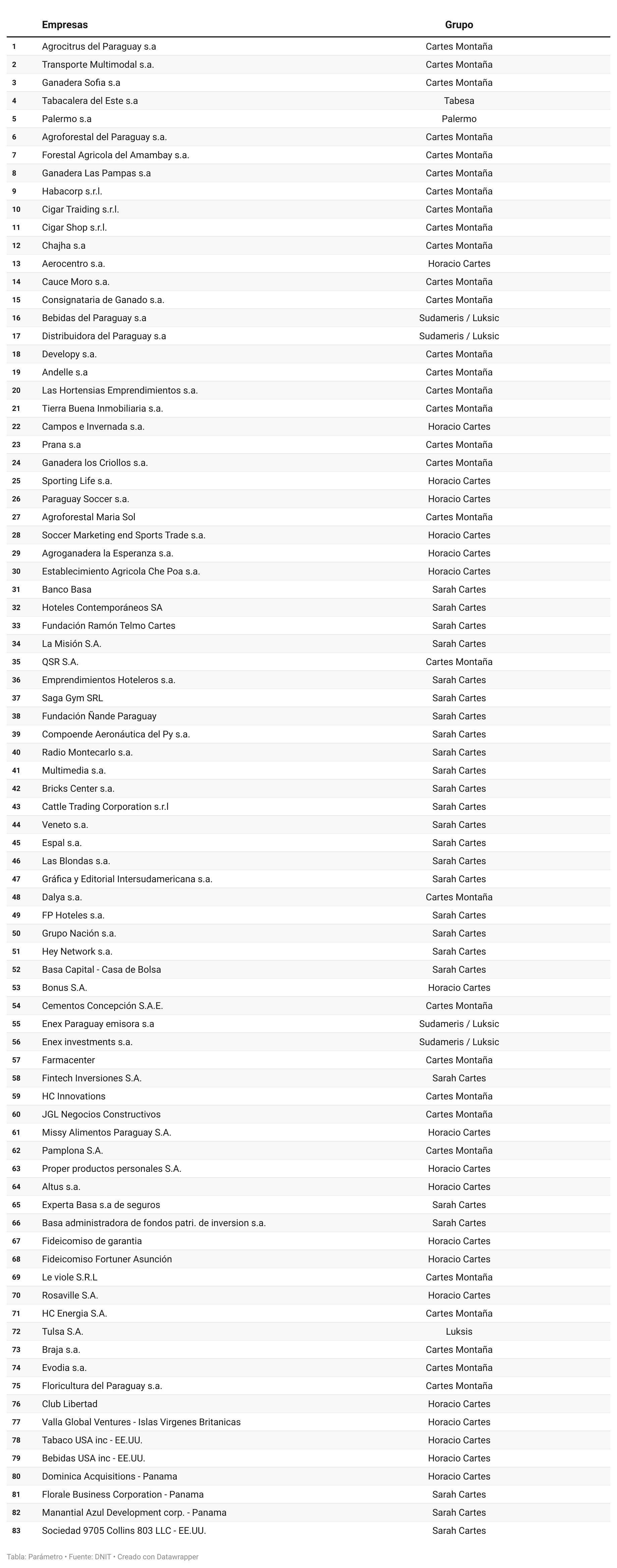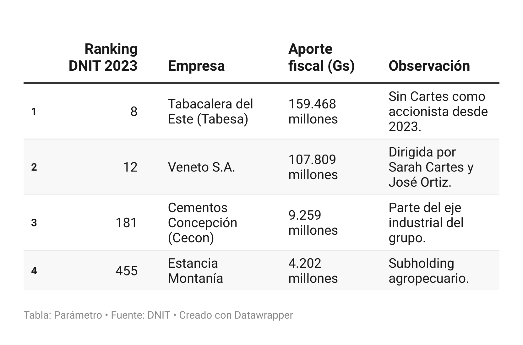 Según la Dirección Nacional de Ingresos Tributarios (DNIT), el conjunto de empresas vinculadas al entorno Cartes aportó: