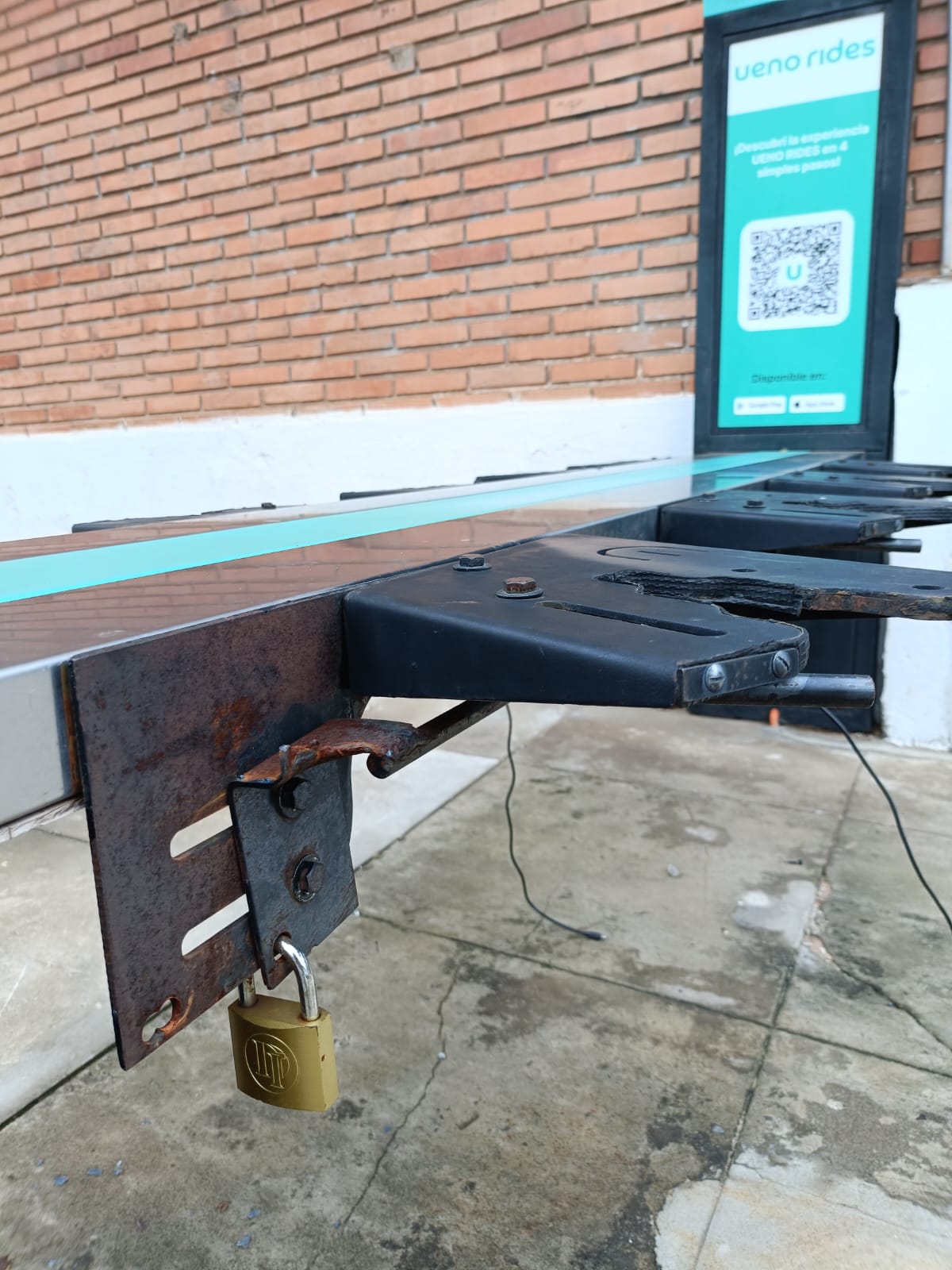 Hace más de cinco meses se levantaron en distintos puntos de Asunción unas bases metálicas pintadas con los colores de Ueno Bank, con códigos QR y el logotipo de la entidad financiera. Estaban destinadas, según se anunció, a funcionar como puntos de recarga y anclaje monopatines eléctricos que nunca llegaron. La aplicación que debía activarlos no existe, los códigos no conducen a ningún servicio y las estructuras, de gran tamaño y diseño industrial, permanecen fijas sobre veredas y plazas, ocupando espacio público sin función alguna.