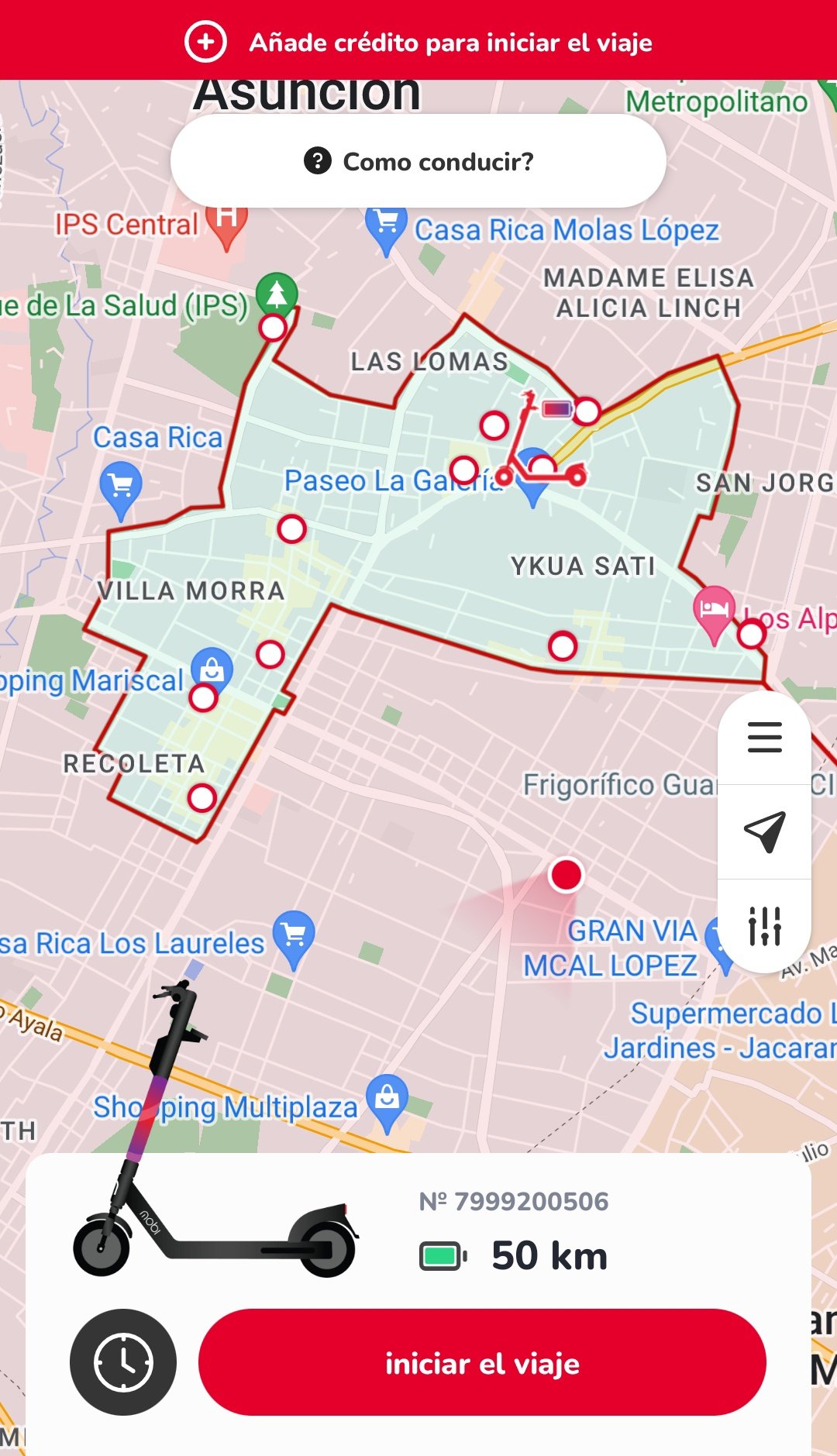 Así figuraba en la aplicación de MOBI la zona habilitada para operar, limitada a Villa Morra, Las Lomas, Recoleta y Las Mercedes. Actualmente, la app fue modificada y ya no muestra esa función.