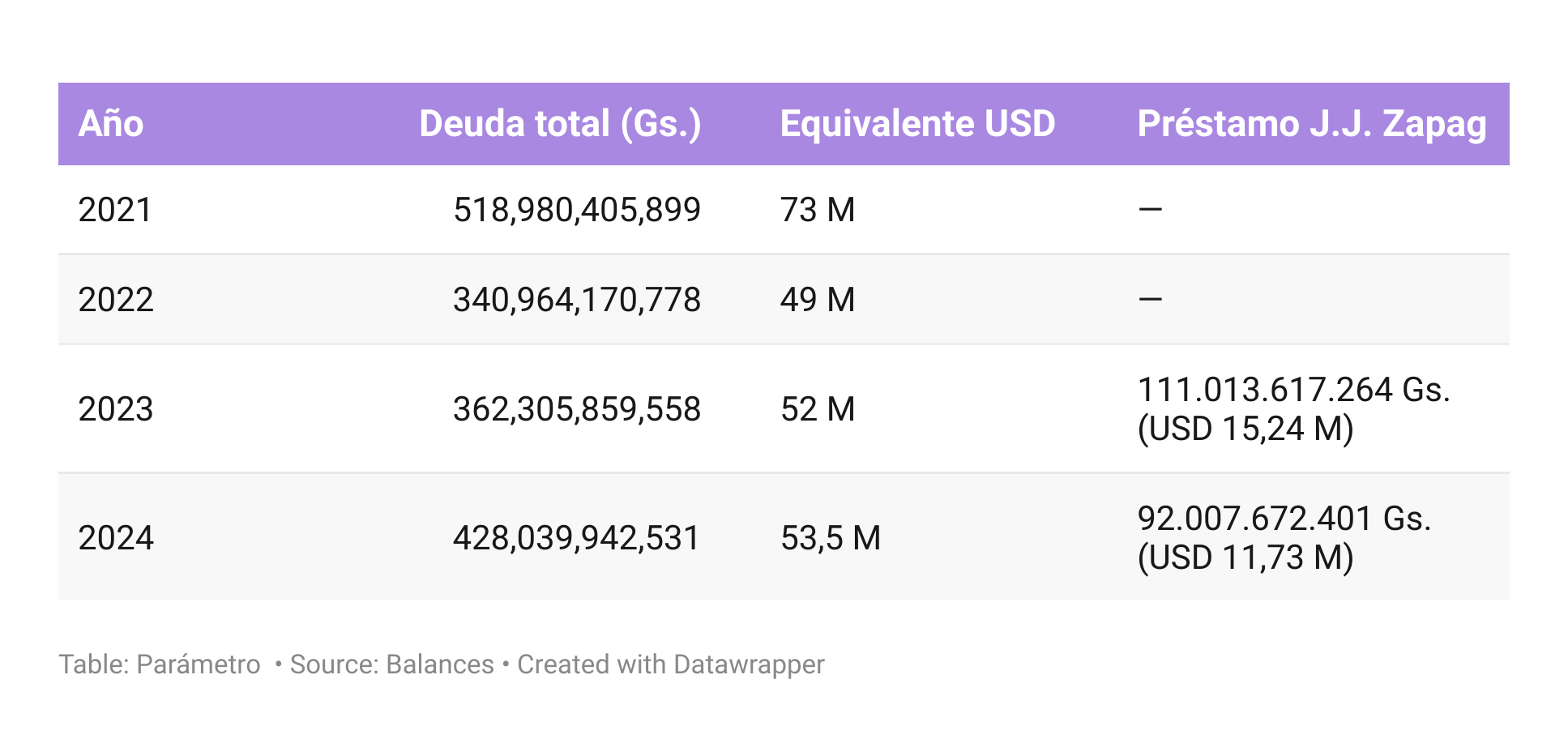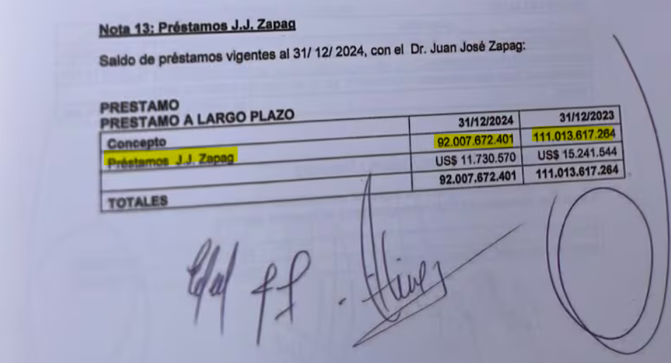 Al 31 de diciembre de 2024, Cerro Porteño debía a Juan José Zapag USD 11,73 millones, una reducción frente a los USD 15,24 millones del año anterior, pero que sigue representando alrededor del 22 % del pasivo total.