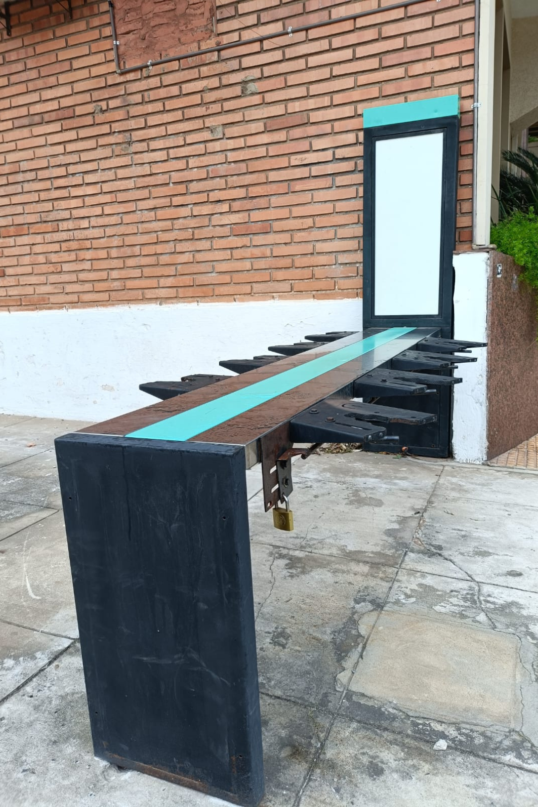 Estructura para monopatines ya sin logo de UENO en la Escalinata Antequera, Asunción